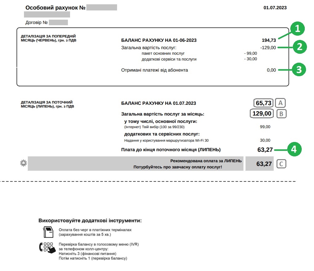 4. Рекомендована сума оплати до кінця поточного місяця за обраний Вами набір послуг.