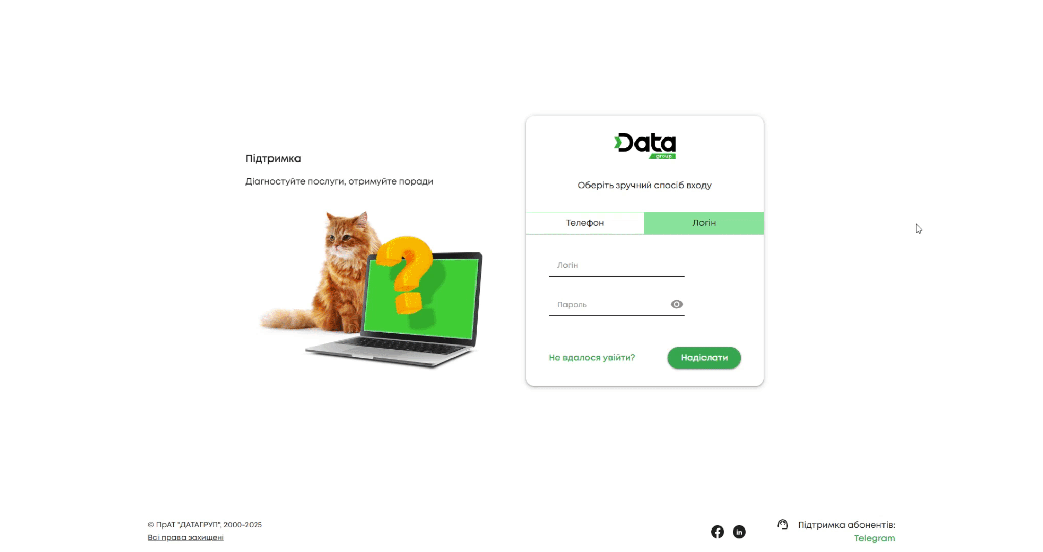 Важливо! Пароль до особистого кабінету є інформацією з обмеженим доступом. Після відновлення або зміни пароля не передавайте інформацію про нього третім особам. При дотриманні простих правил безпеки зберігання інформації з обмеженим доступом вона не стане надбанням третіх осіб. Наша компанія вживає всіх необхідних заходів у межах своєї компетенції для того, щоб Ваш пароль до порталу абонента не було розголошено третім особам, які не мають стосунку до надання телекомунікаційних послуг Абоненту.