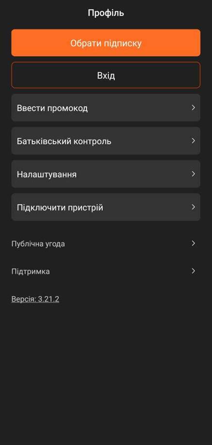 Після реєстрації абоненту необхідно буде обрати план підписки в Профілі в розділі «Управління підпискою», якщо на момент реєстрації не було підключено пакет автоматично.