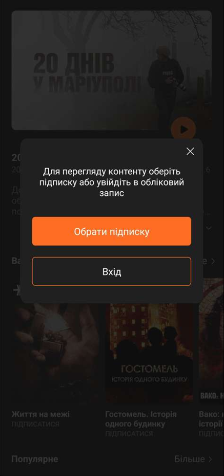 ) головного меню або почати дивитись контент, що недоступний для неавторизованого користувача.