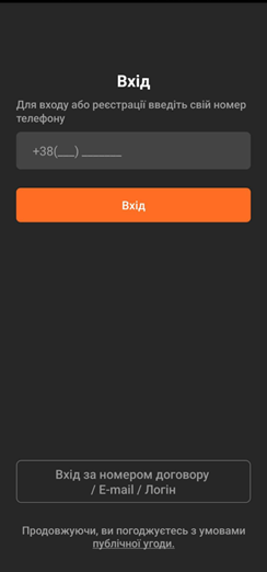 - При цьому, якщо у користувача вже існував договір з даним номером телефону – відбудеться вхід. Якщо користувач новий – відбудеться реєстрація.