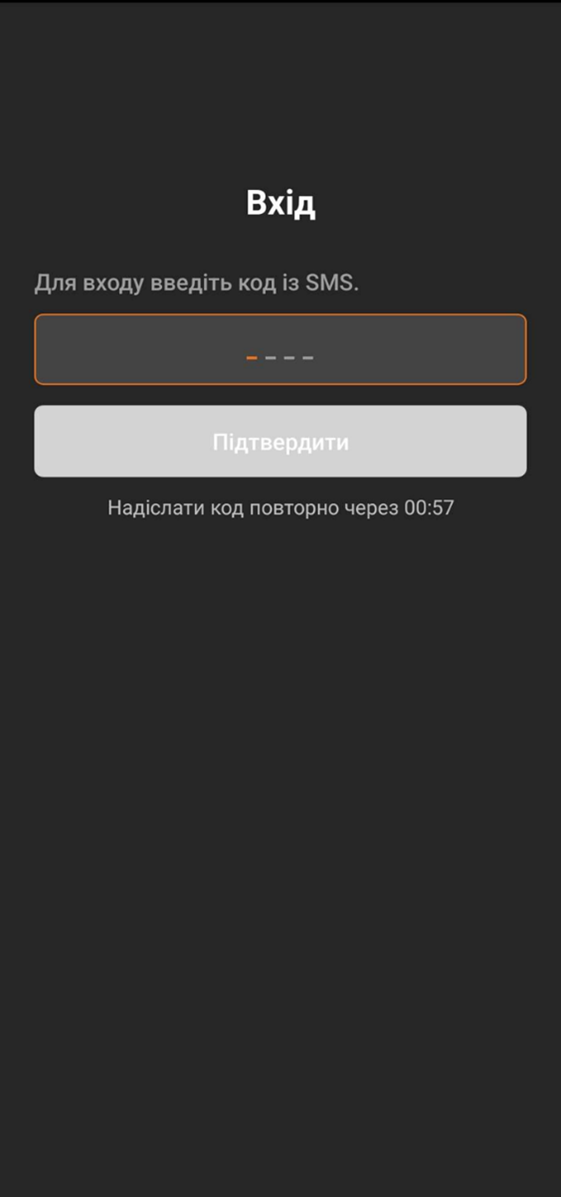 Якщо СМС з перевірочним кодом не надійшла відразу, є можливість відправити смс повторно, обравши кнопку «Відправити повторно».