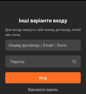 - Також існуючому абоненту вхід можливо виконати через альтернативні варіанти авторизації: