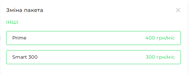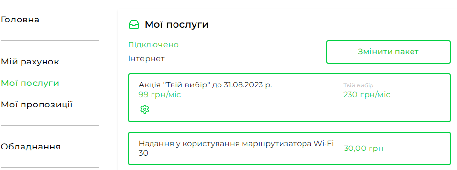 Далі в блоці «Мої послуги» натисніть на кнопку «Змінити пакет».